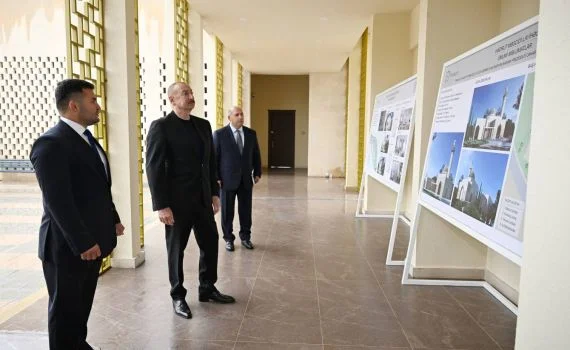Prezident İlham Əliyevə qəsəbədə inşa edilmiş məscid barədə də məlumat verildi.